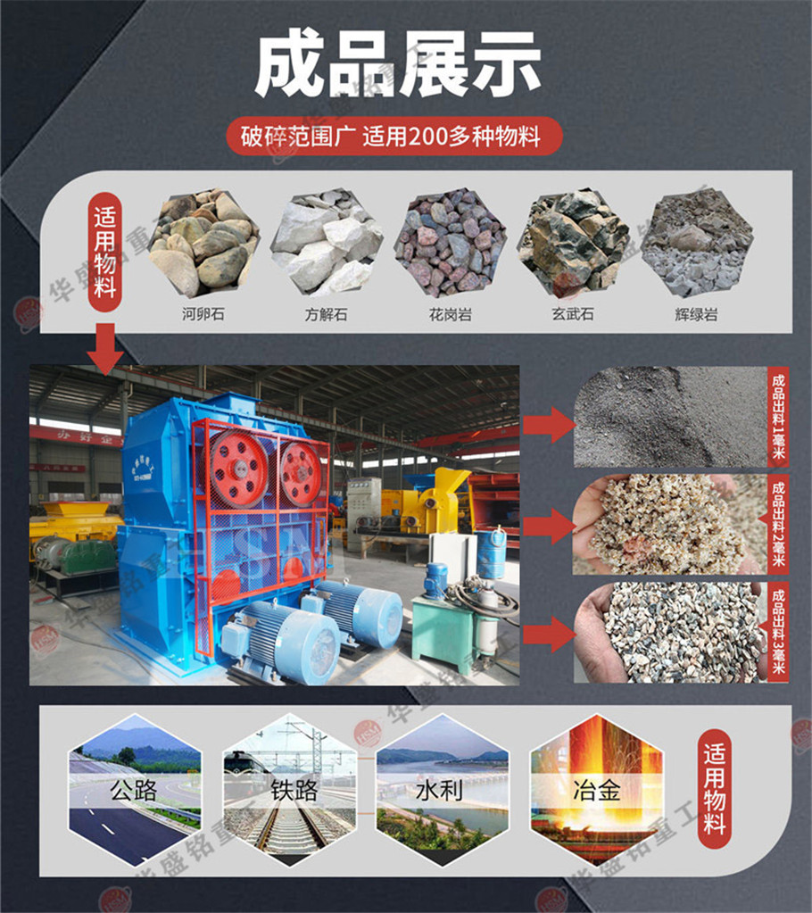 應用領域:適用于抗壓強度小于200Mpa、濕度小于30%的硬、中硬物料的細碎作業